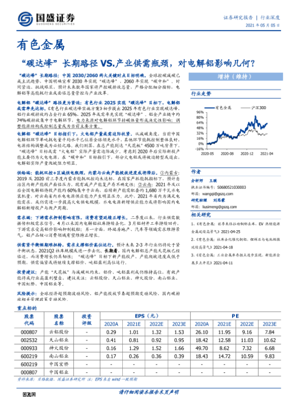 【国盛证券】【20210505】有色金属:“碳达峰”长期路径VS.产业供需瓶颈,对电解铝影响几何?-33页 行业研究