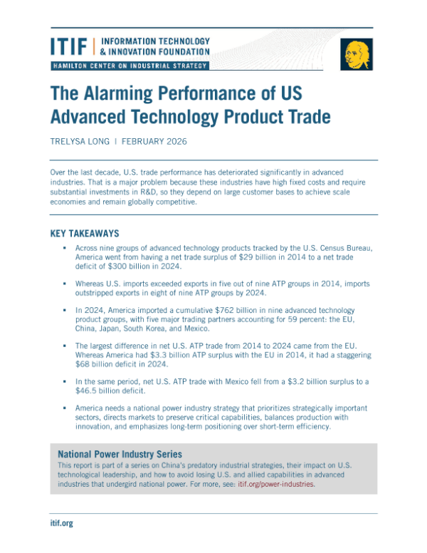 【Information Technology and Innovation Foundation (ITIF)】【202602】The Alarming Performance of US Advanced Technology Product Trade-30页 行业研究