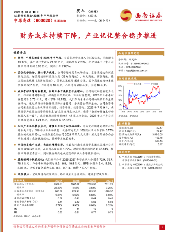 【西南证券】【20250810】财务成本持续下降,产业优化整合稳步推进-5页 证券期货研究报告