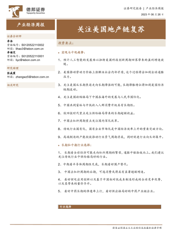 【德邦证券】【20230626】产业经济周报:关注美国地产链复苏-24页 行业研究