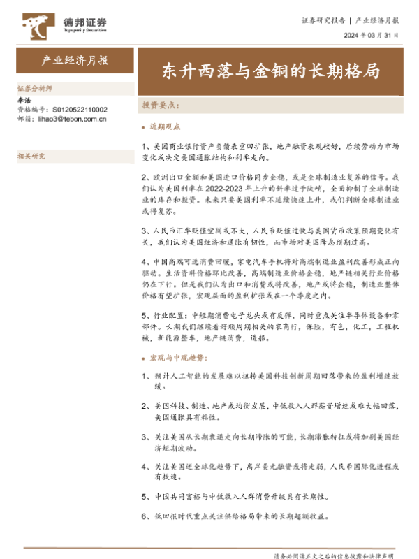 【德邦证券】【20240331】产业经济月报:东升西落与金铜的长期格局-13页 行业研究