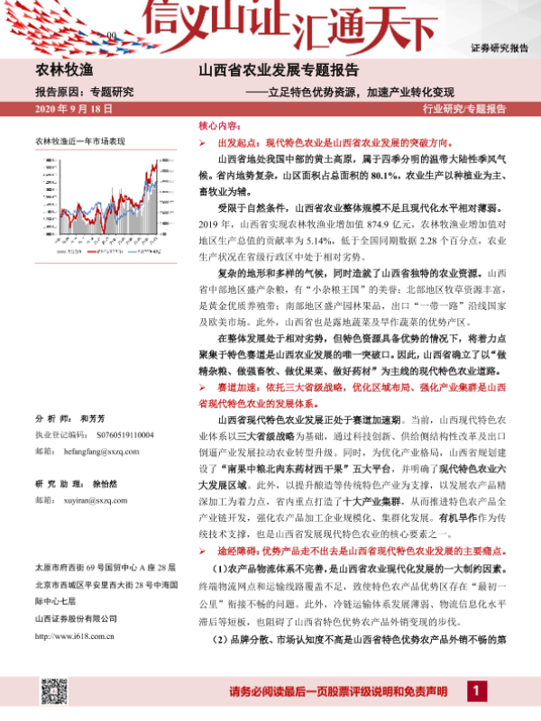 【山西证券】【20200918】2020.09.18-山西省农业发展专题报告:立足特色优势资源,加速产业转化变现-34页 行业研究