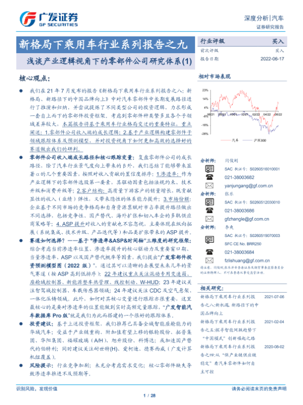 【广发证券】【20220617】新格局下乘用车行业系列报告之九:浅谈产业逻辑视角下的零部件公司研究体系(1)-28页 行业研究