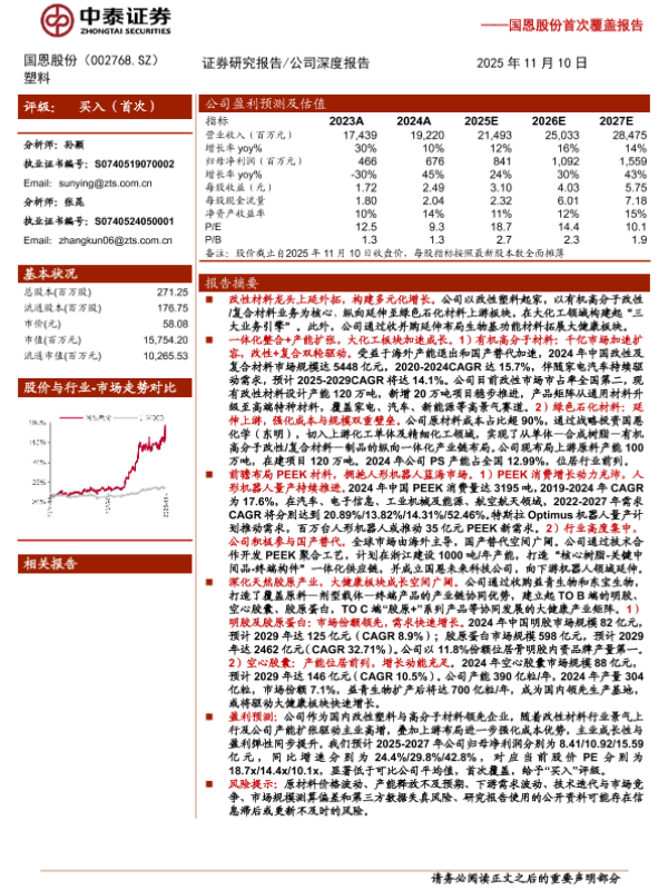 【中泰证券】【202511】国恩股份(002768)首次覆盖报告:改性材料龙头成长可期,PEEK产业链一体化加速推进-25页 证券期货研究报告