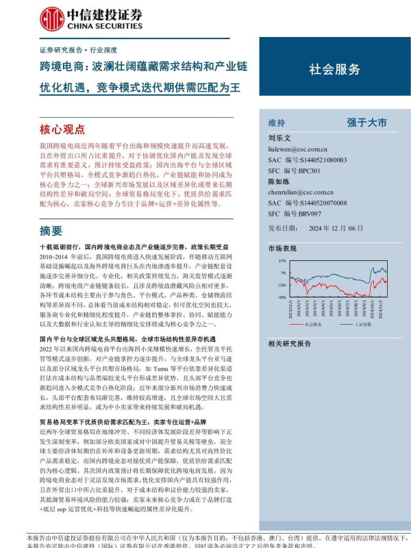【中信建投证券】【20241206】跨境电商行业:波澜壮阔蕴藏需求结构和产业链优化机遇,竞争模式迭代期供需匹配为王-46页 行业研究