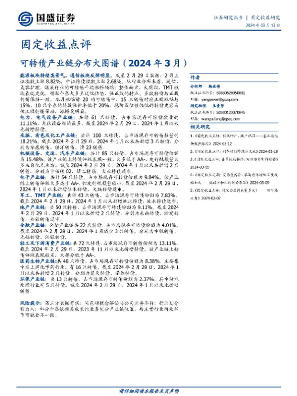 【国盛证券】【202403】固定收益点评:可转债产业链分布大图谱(2024年3月)-23页 行业研究