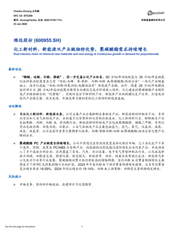 【环球富盛理财有限公司】【202601】化工新材料、新能源双产业链独特优势,聚碳酸酯需求持续增长-3页 证券期货研究报告