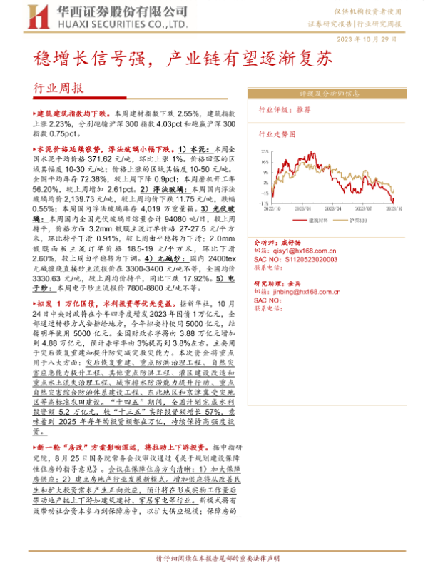 【华西证券】【20231029】装修建材行业周报:稳增长信号强,产业链有望逐渐复苏-20页 行业研究