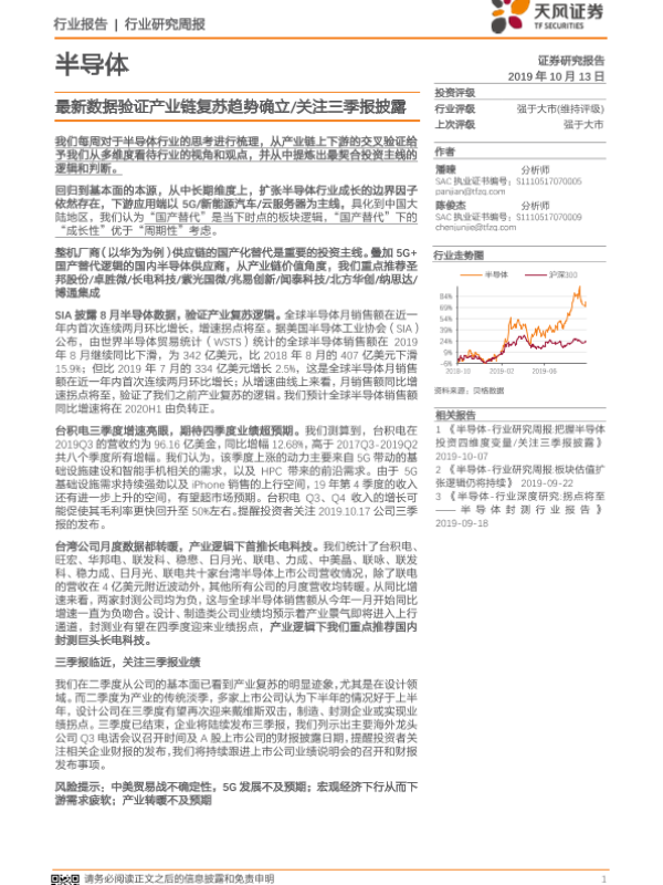 【天风证券】【20191013】20191013-天风证券-半导体行业研究周报:最新数据验证产业链复苏趋势确立 关注三季报披露-10页 行业研究