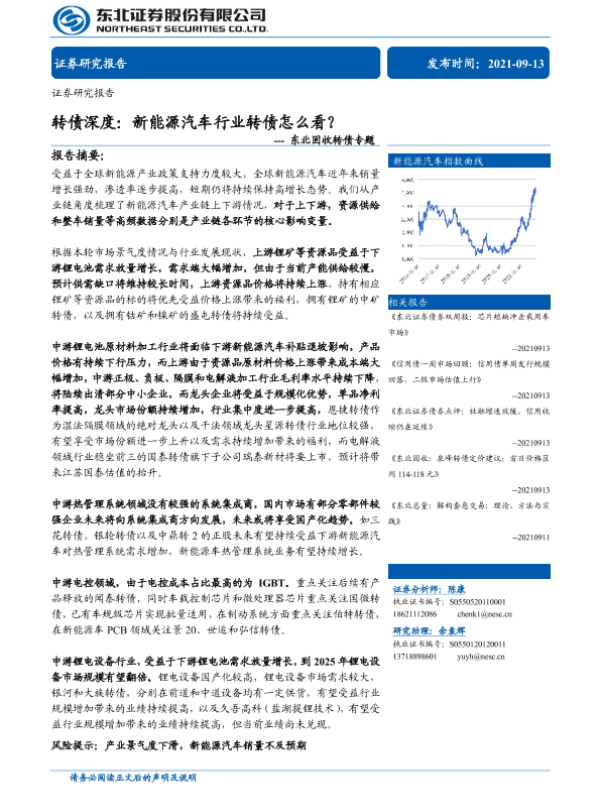 【东北证券】【20210913】固收转债专题:转债深度,新能源汽车行业转债怎么看?-81页 行业研究