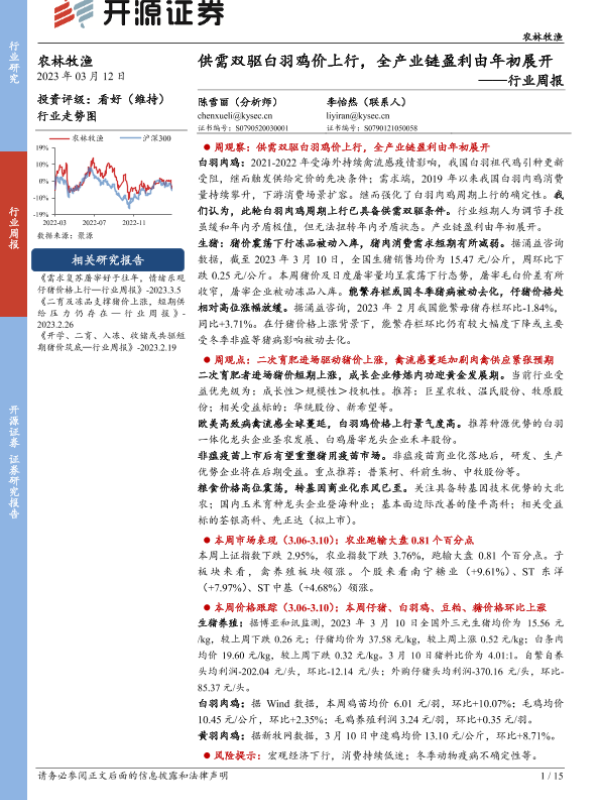 【开源证券】【20230312】农林牧渔行业周报:供需双驱白羽鸡价上行,全产业链盈利由年初展开-15页 行业研究