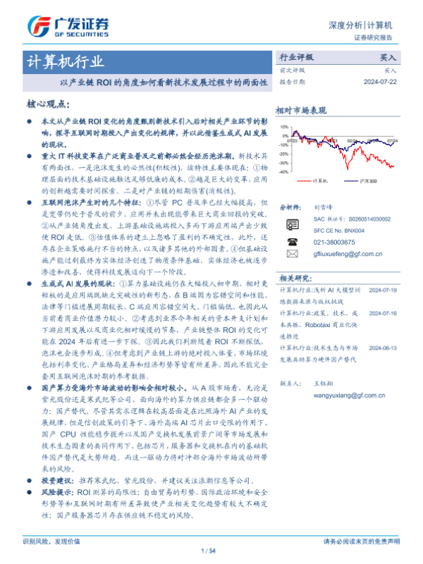 【广发证券】【20240722】计算机行业:以产业链ROI的角度如何看新技术发展过程中的两面性-54页 行业研究
