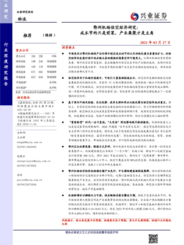 【兴业证券】【20210327】鄂州机场临空经济研究:成本节约只是前菜,产业集聚才是主角-33页 行业研究
