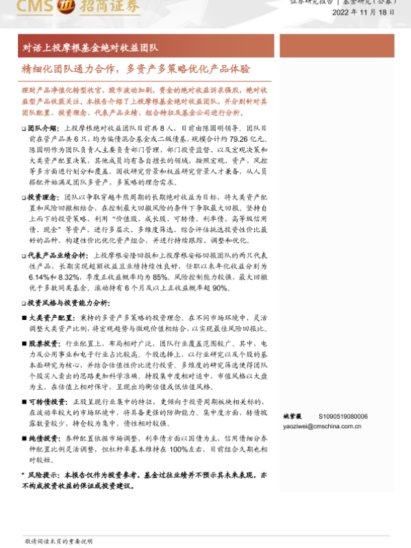 【海通证券】【20221118】对话上投摩根基金绝对收益团队:精细化团队通力合作,多资产多策略优化产品体验-22页 行业研究