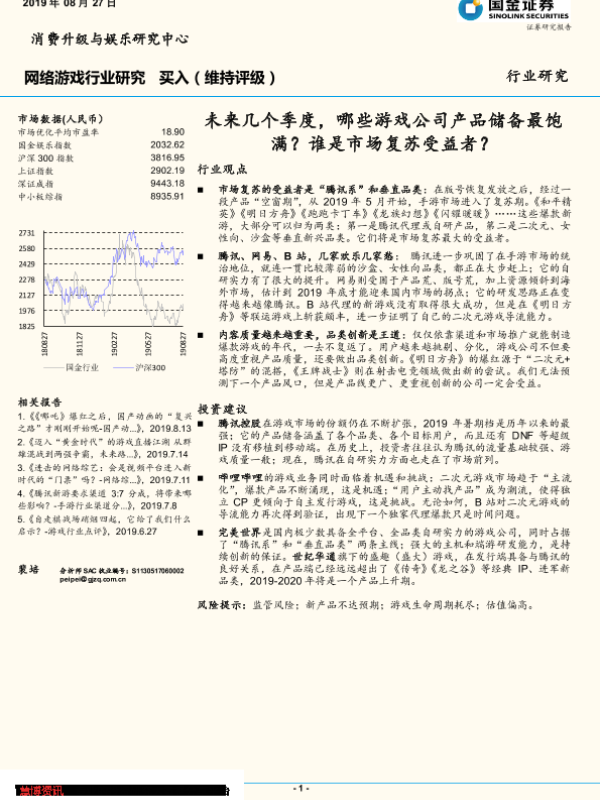 【国金证券】【20190827】20190827-国金证券-网络游戏行业研究:未来几个季度,哪些游戏公司产品储备最饱满?谁是市场复苏受益者?-11页 行业研究