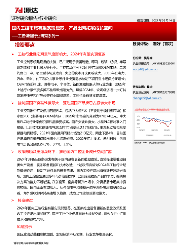 【源达信息】【20240315】国内工控市场有望实现复苏-产品出海拓展成长空间-13页 行业研究