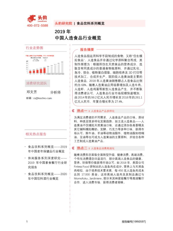 【头豹研究院】【2019】2019年中国人造食品行业概览-32页 行业研究