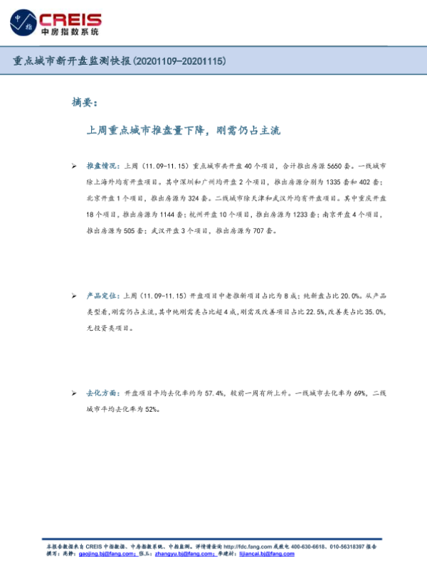 【中指研究院】【20201115】重点城市新开盘监测快报-4页 市场调研