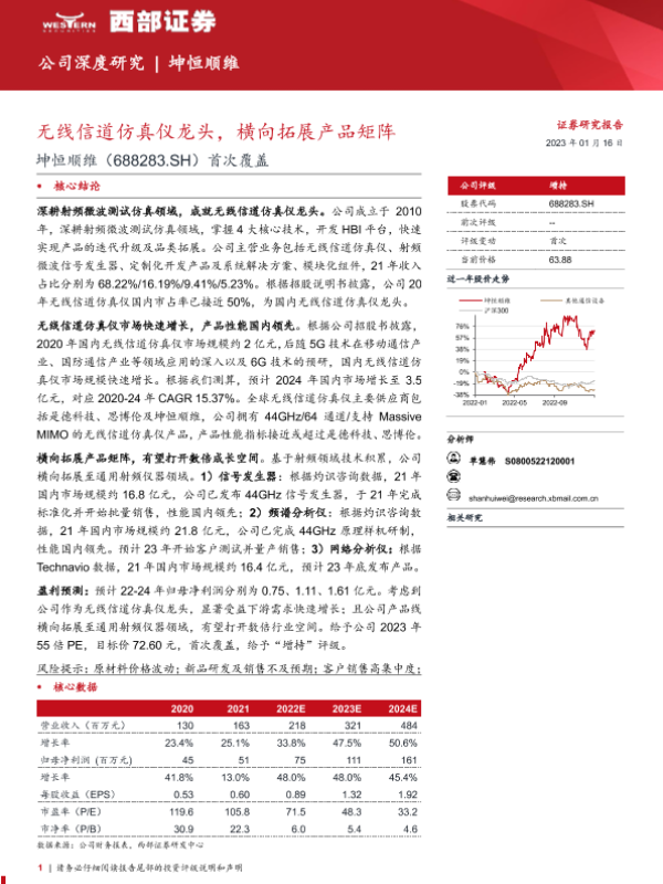 【西部证券】【20230116】坤恒顺维(688283)首次覆盖:无线信道仿真仪龙头,横向拓展产品矩阵-30页 行业研究