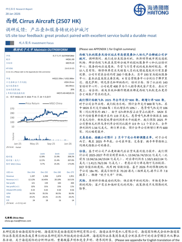 【海通国际】【202601】西锐 Cirrus Aircraft(2507 HK) 调研反馈:产品叠加服务铸就的护城河-11页 公司研究