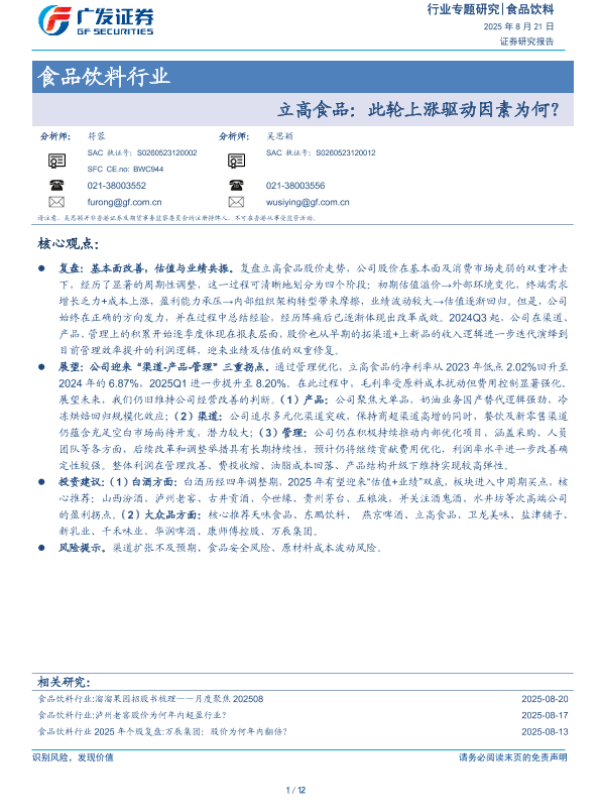 【广发证券】【202508】食品饮料行业:立高食品,此轮上涨驱动因素为何?-12页 证券期货研究报告