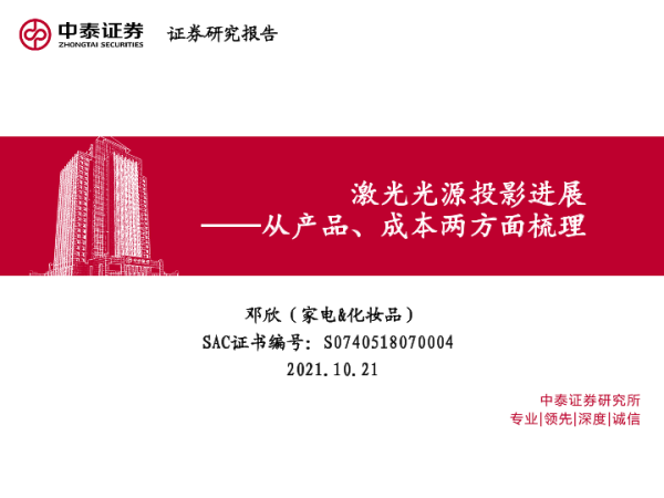 【中泰证券】【20211021】激光光源投影进展——从产品、成本两方面梳理-22页 行业研究