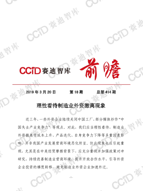 【赛迪智库】【20190320】理性看待制造业外资撤离现象-7页 行业研究
