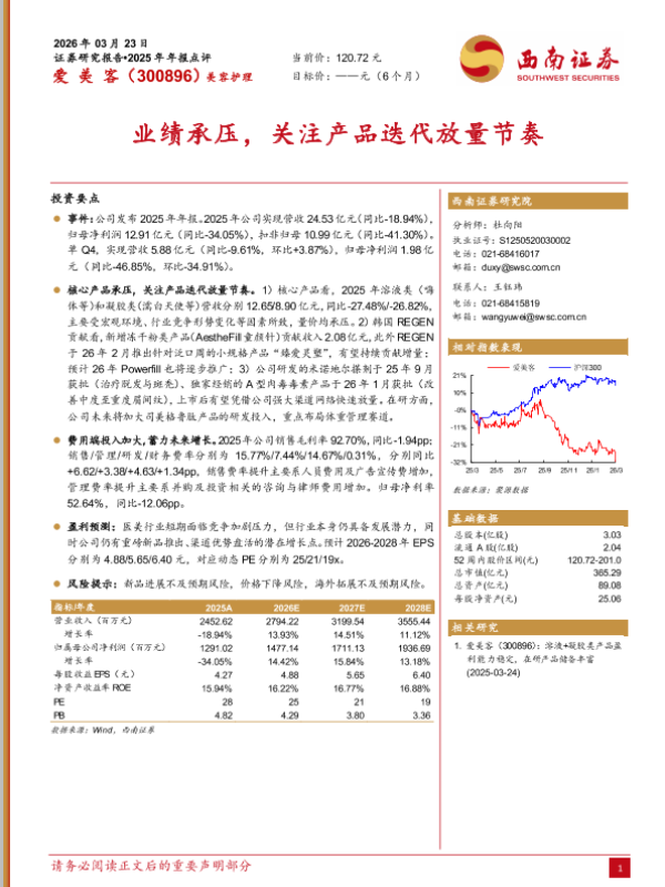 【西南证券】【202603】业绩承压,关注产品迭代放量节奏-6页 证券期货研究报告