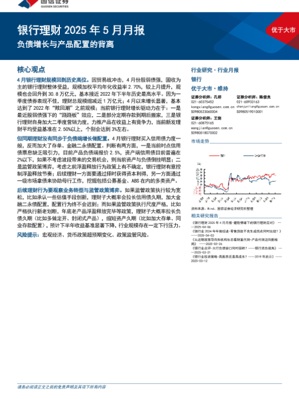 【国信证券】【20250507】银行业理财2025年5月月报:负债增长与产品配置的背离-12页 行业研究