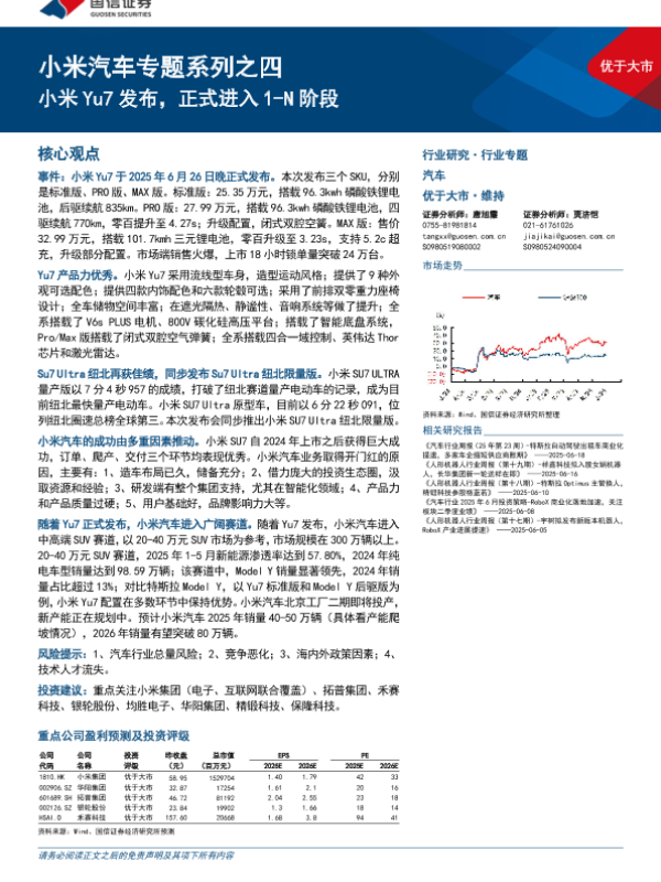 【国信证券】【20250701】汽车行业小米汽车专题系列之四:小米Yu7发布,正式进入1-N阶段-24页 证券期货研究报告