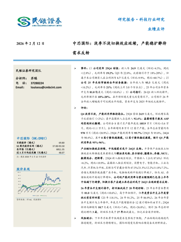 【民银证券】【202602】中芯国际_淡季不淡切换效应延续_产能稳扩静待需求反转-7页 公司研究