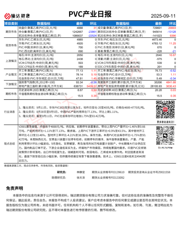 【RUIDAFUTURESCO..LTD.】【202509】PVC产业日报-1页 证券期货研究报告
