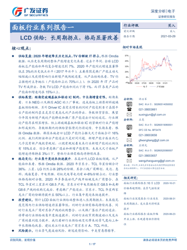 【广发证券】【20210329】面板行业系列报告一:LCD供给:长周期拐点,格局显著改善-17页 行业研究