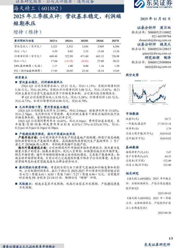 【东吴证券】【202511】2025年三季报点评:营收基本稳定,利润端短期承压-3页 证券期货研究报告