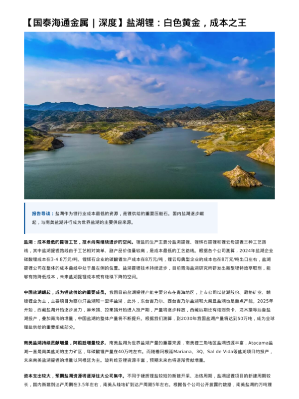 【国泰海通】【2026】盐湖锂:白色黄金,成本之王-4页 证券期货研究报告