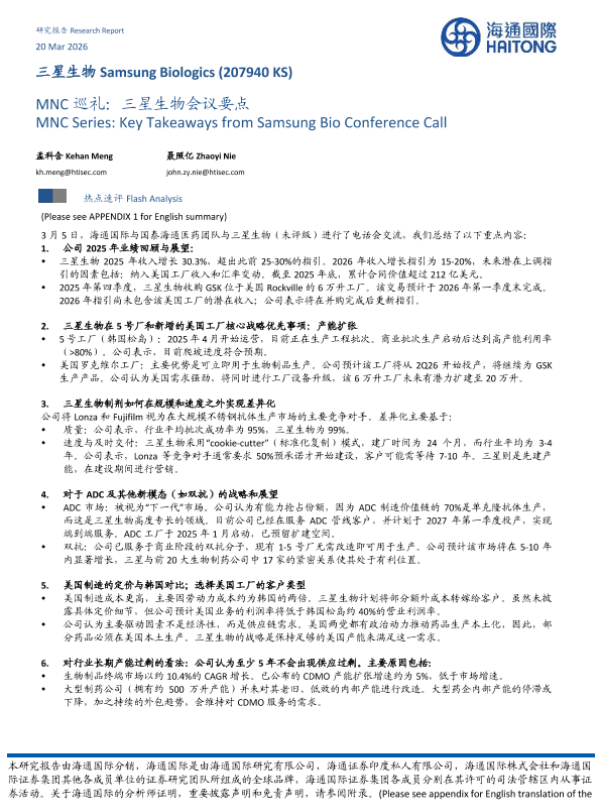 【海通国际】【2026】MNC巡礼:三星生物会议要点-9页 公司研究