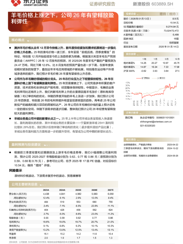 【东方证券】【202601】羊毛价格上涨之下,公司26年有望释放盈利弹性-5页 证券期货研究报告