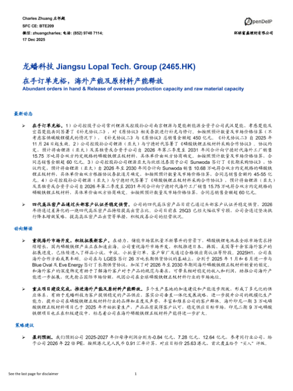 【环球富盛理财有限公司】【202512】在手订单充裕& Release of overseas production capacity and raw material capacity-5页 证券期货研究报告