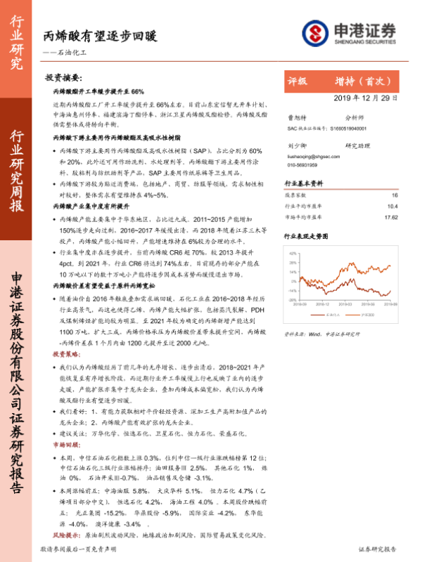 【申港证券】【20191229】石油化工行业研究周报:丙烯酸有望逐步回暖-24页 行业研究