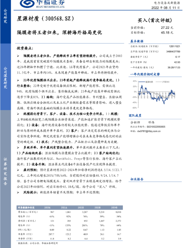 【华福证券】【20220811】隔膜老将王者归来,深耕海外格局更优-19页 行业研究