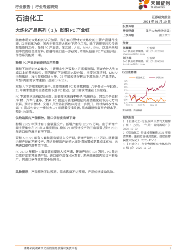 【天风证券】【20210110】大炼化产品系列(1):酚酮PC产业链-11页 行业研究