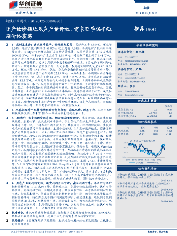 【华创证券】【20190331】20190331-华创证券-钢铁行业周报:限产检修接近尾声产量释放,需求旺季偏平短期价格震荡-25页 行业研究