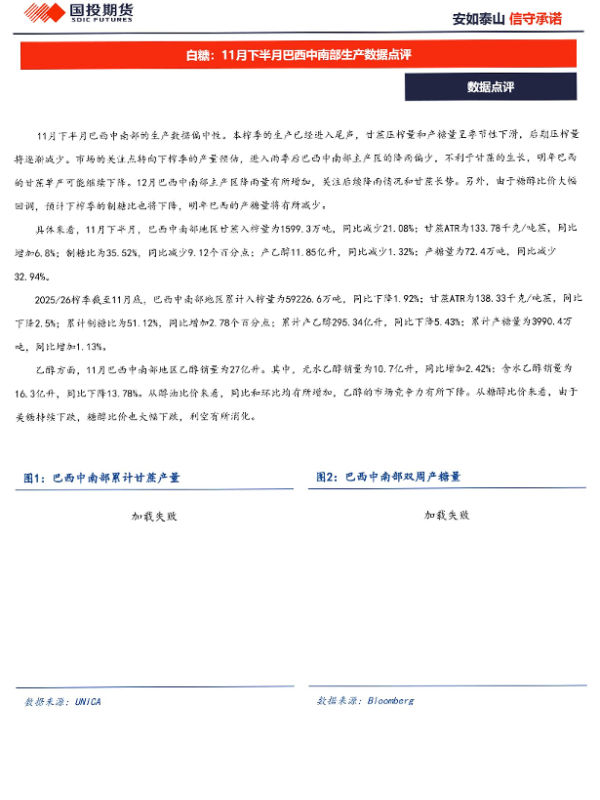 【国投期货有限公司】【202311】白糖_11月下半月巴西中南部生产数据点评-4页 证券期货研究报告
