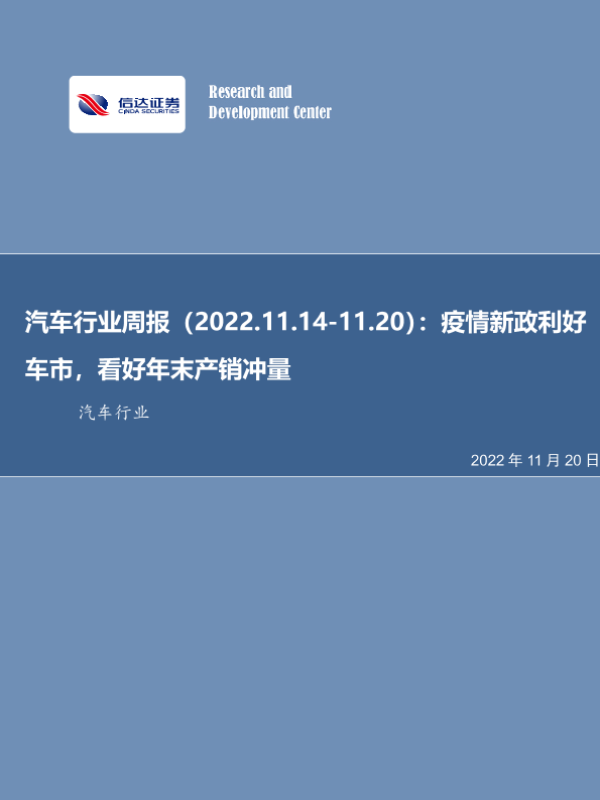 【信达证券】【20221120】20221120-信达证券-汽车行业周报:疫情新政利好车市,看好年末产销冲量-21页 行业研究