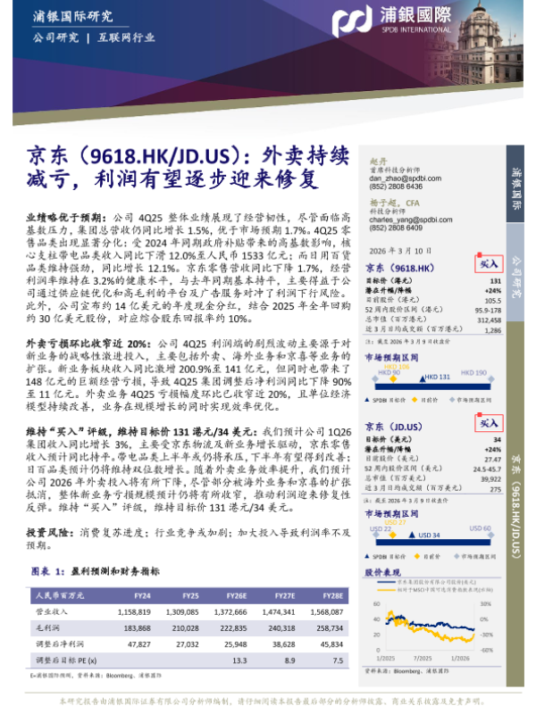 【浦银国际】【202603】京东(9618.HK/JD.US):外卖持续减亏,利润有望逐步迎来修复-7页 证券期货研究报告