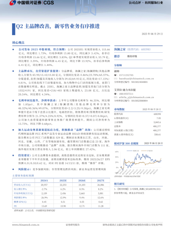 【银河证券】【20250829】海澜之家-600398.SH-Q2主品牌改善-新零售业务有序推进-3页 证券期货研究报告
