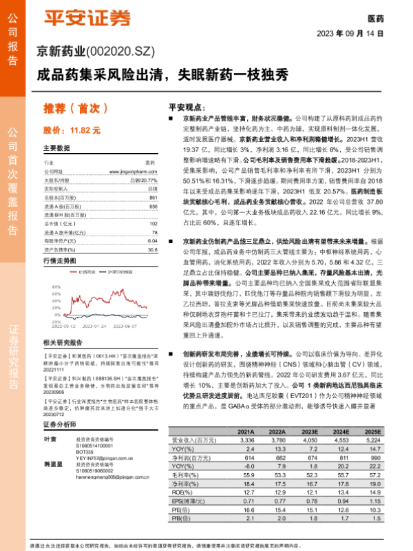 【国泰君安证券】【20230618】京新药业首次覆盖报告:精神神经领域龙头,创新转型曙光初现-26页 行业研究