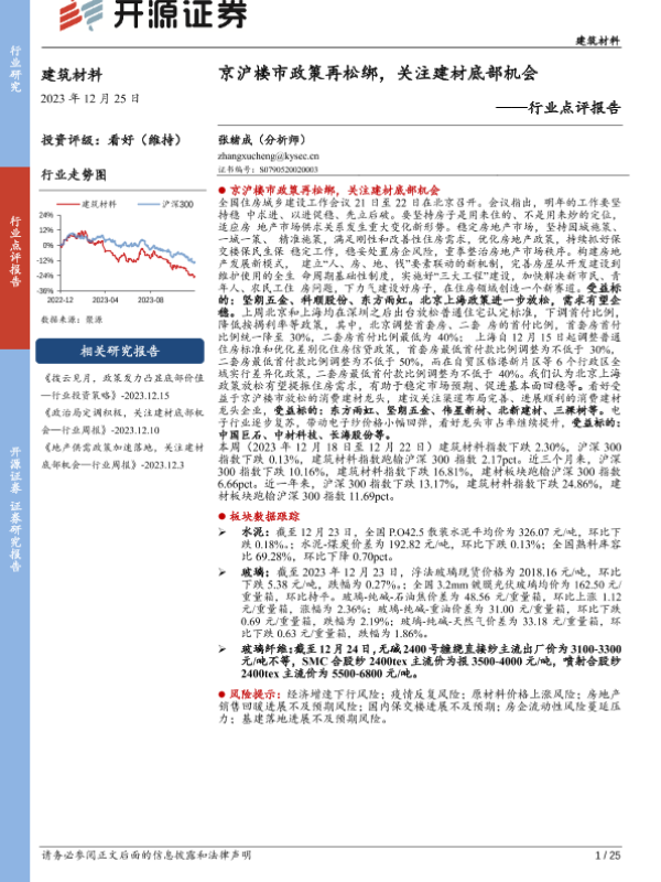 【开源证券】【20231225】建筑材料行业点评报告:京沪楼市政策再松绑,关注建材底部机会-25页 行业研究