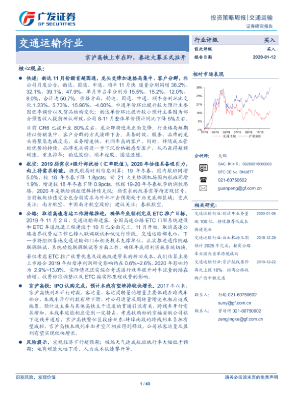 【广发证券】【20200112】交通运输行业投资策略周报:京沪高铁上市在即,春运大幕正式拉开-40页 行业研究