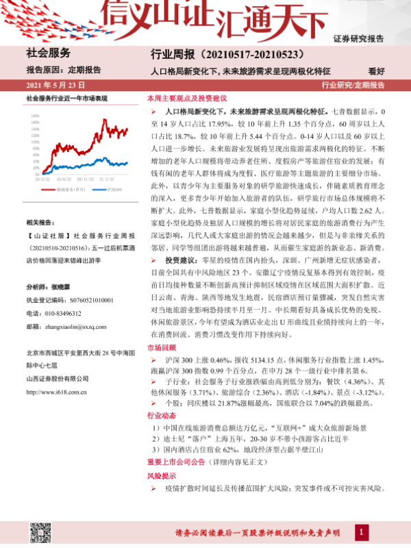 【山西证券】【20210523】社会服务行业周报:人口格局新变化下,未来旅游需求呈现两极化特征-9页 行业研究
